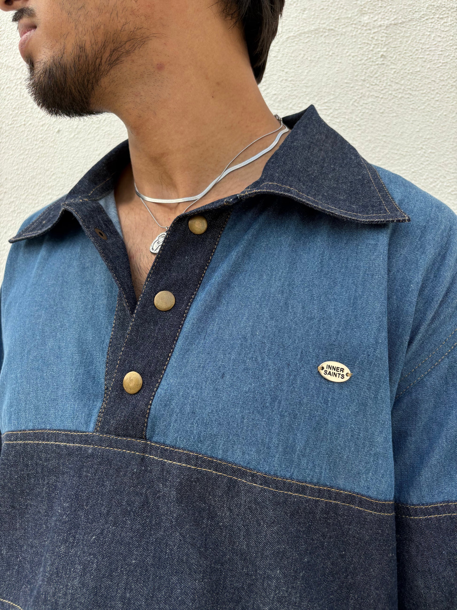 Built with attention to detail and a street-inspired edge, this full-sleeve button-up is perfect for those who appreciate bold design and premium craftsmanship. Made from 100% cotton denim for breathable comfort, it includes durable metal snap closures & a big “S” patchwork on the back adding textures with raw edge threads. The relaxed straight fit allows easy movement from day to night, while the metal snaps serves both style and practicality.